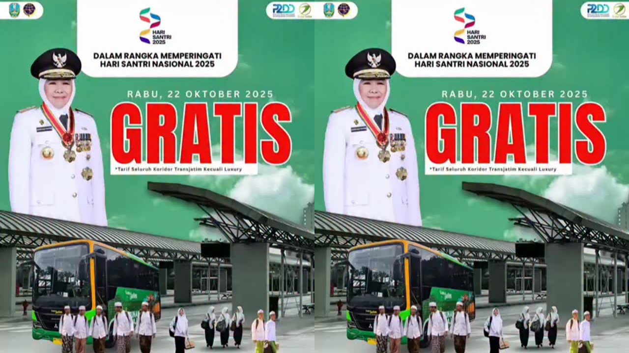 Dalam memperingati Hari Santri 2025 tersebut, Pemerintah Provinsi (Pemprov) Jawa Timur melalui Dinas Perhubungan (Dishub) Jawa Timur memberikan layanan gratis Trans Jatim khusus armada non-luxury.